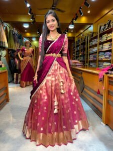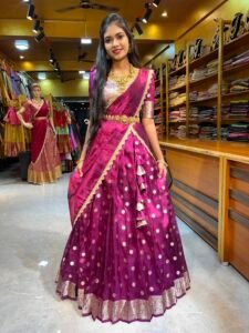 Magenta Tissue Butti Half Saree
