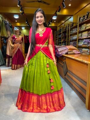 Parrot Green with Rani Pink Cotton Half Saree