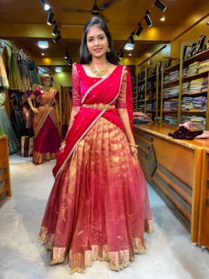 Magenta Tissue Butti Half Saree