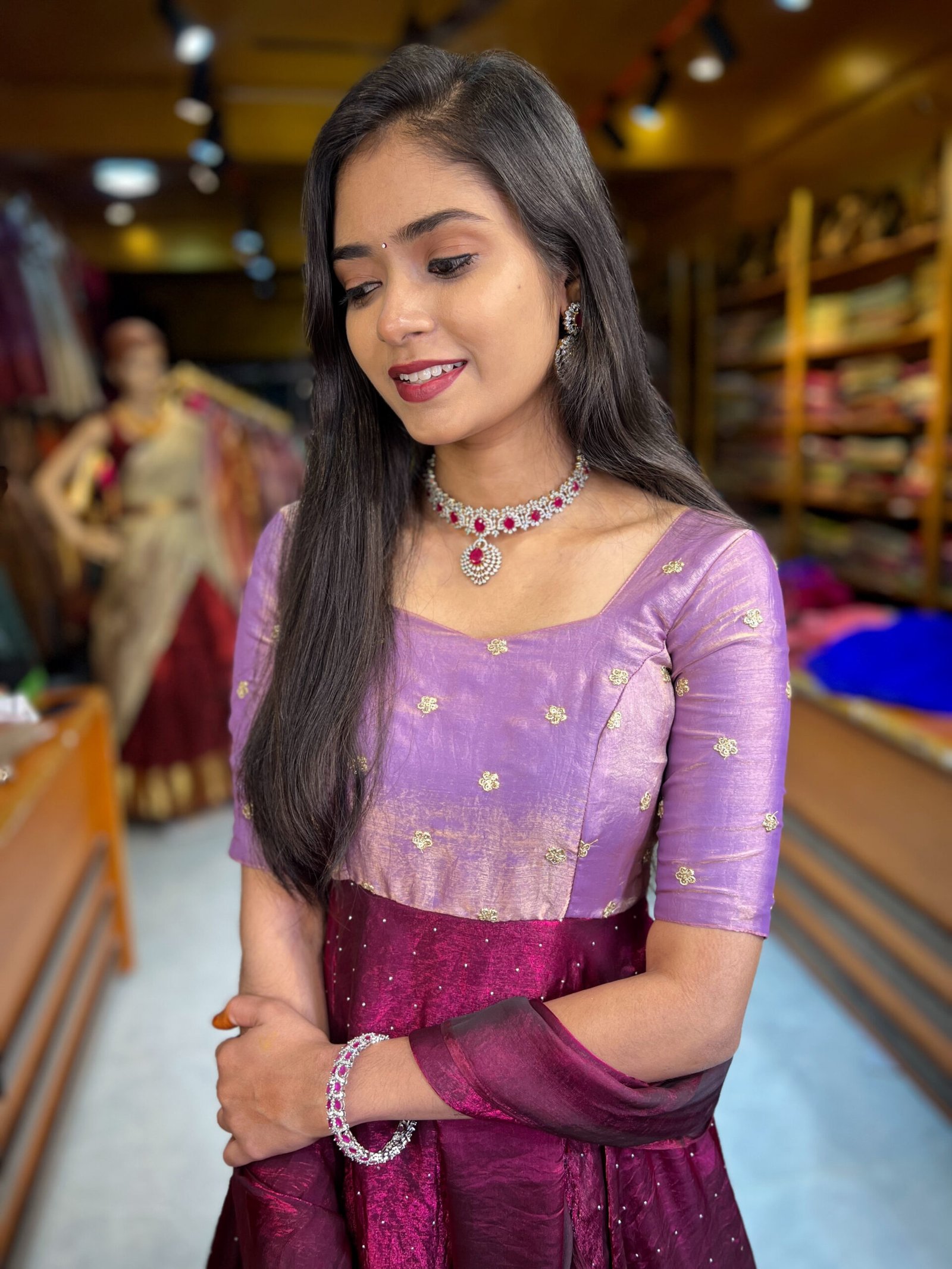 Maxi : Lavender Pink Space Silk Yoke part paired up with Magenta Space Silk  .