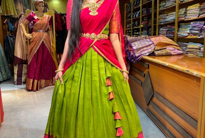 Be the first to review “Maroon with Rani Pink Cotton Half Saree”