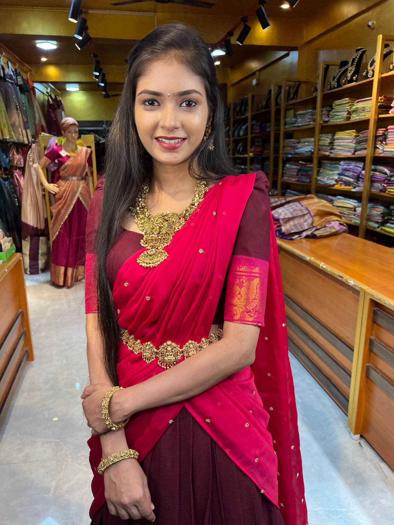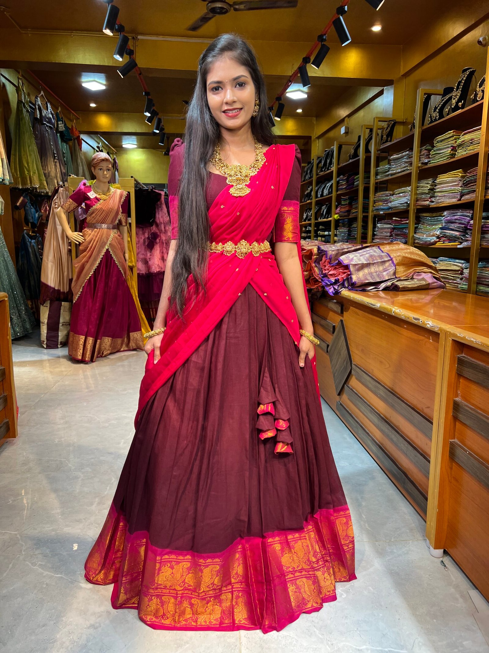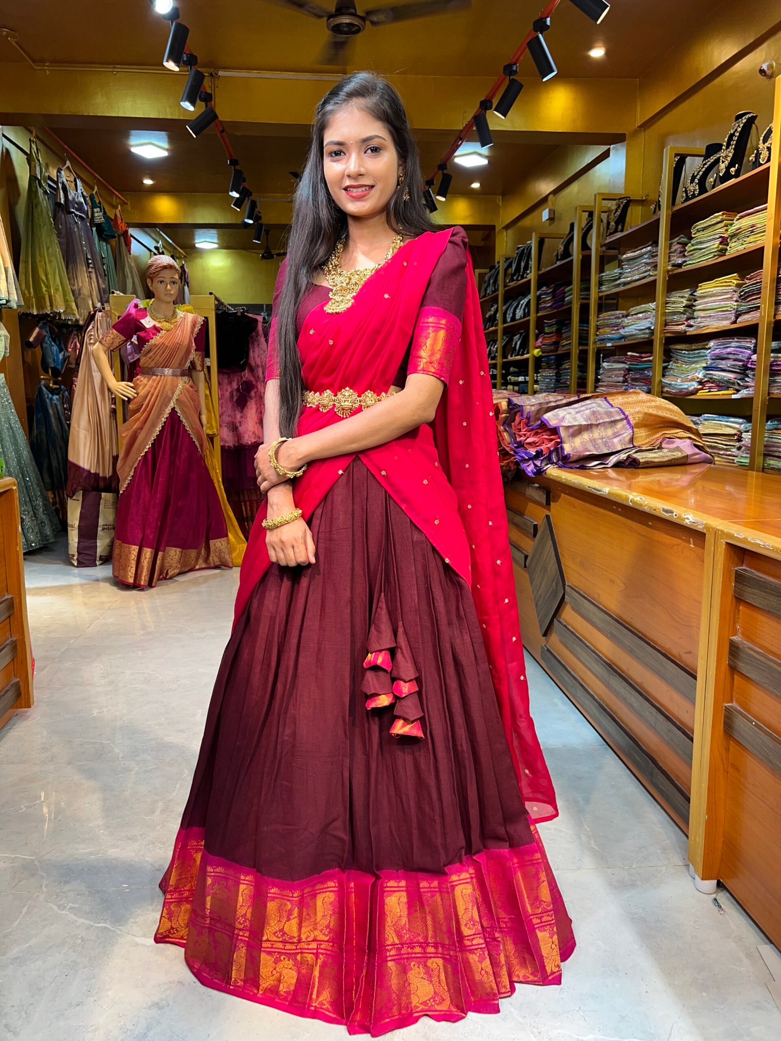 This item: Maroon with Rani Pink Cotton Half Saree