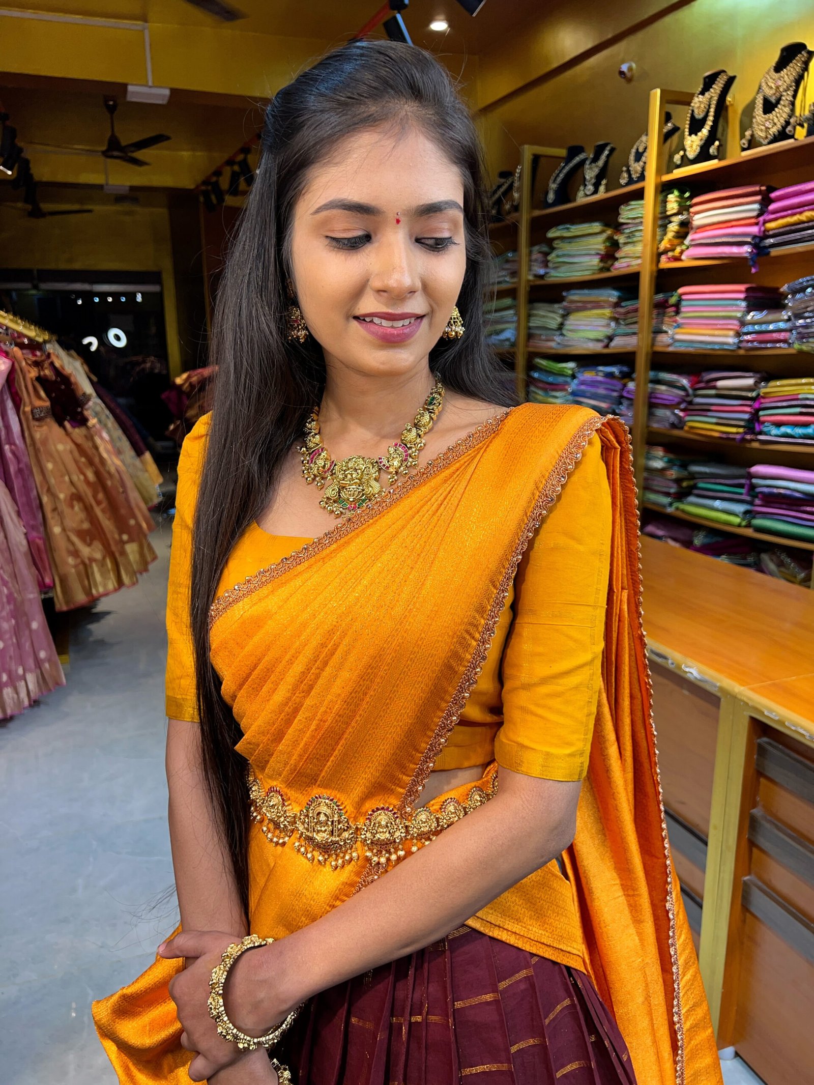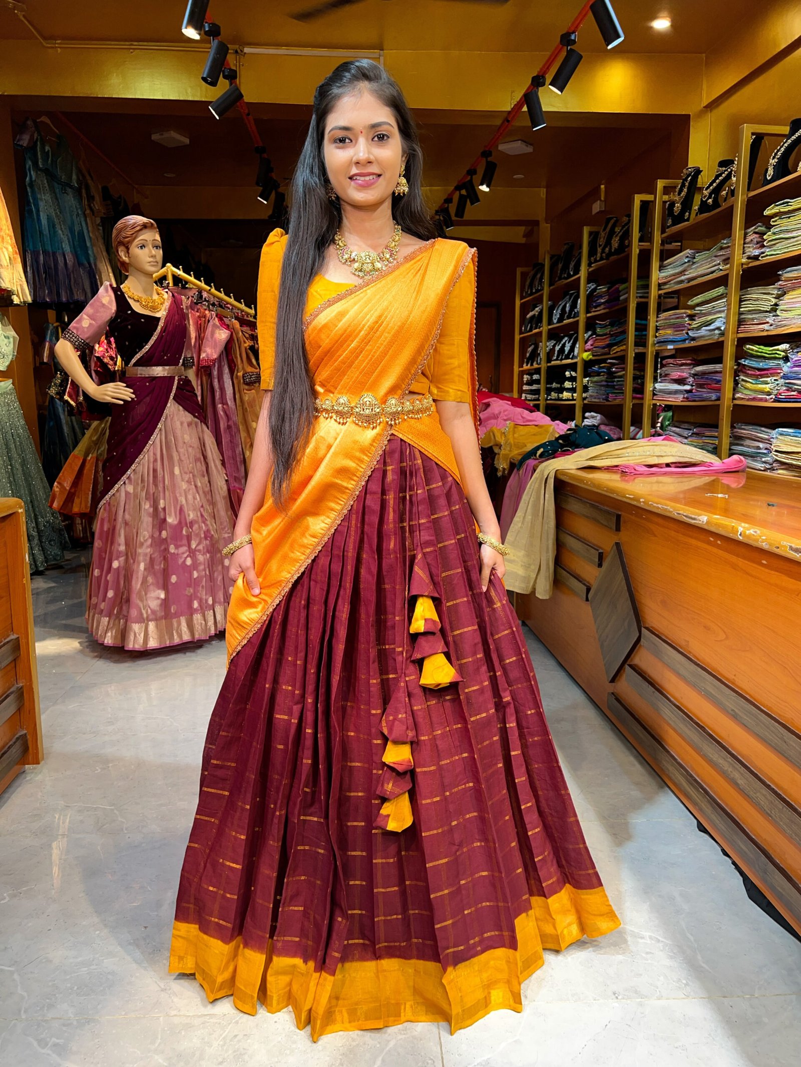 Be the first to review “Maroon with Yellow Cotton Half Saree”