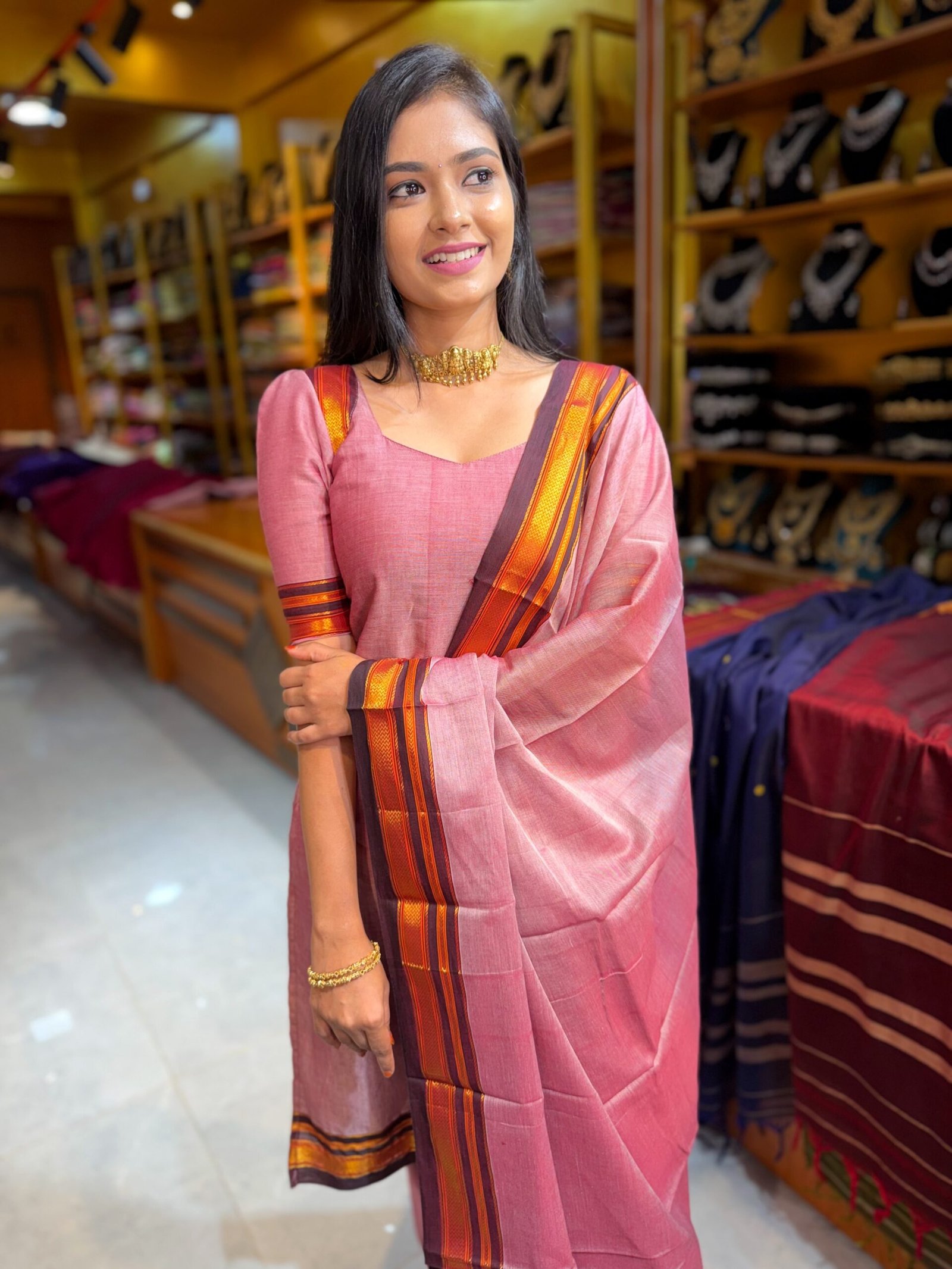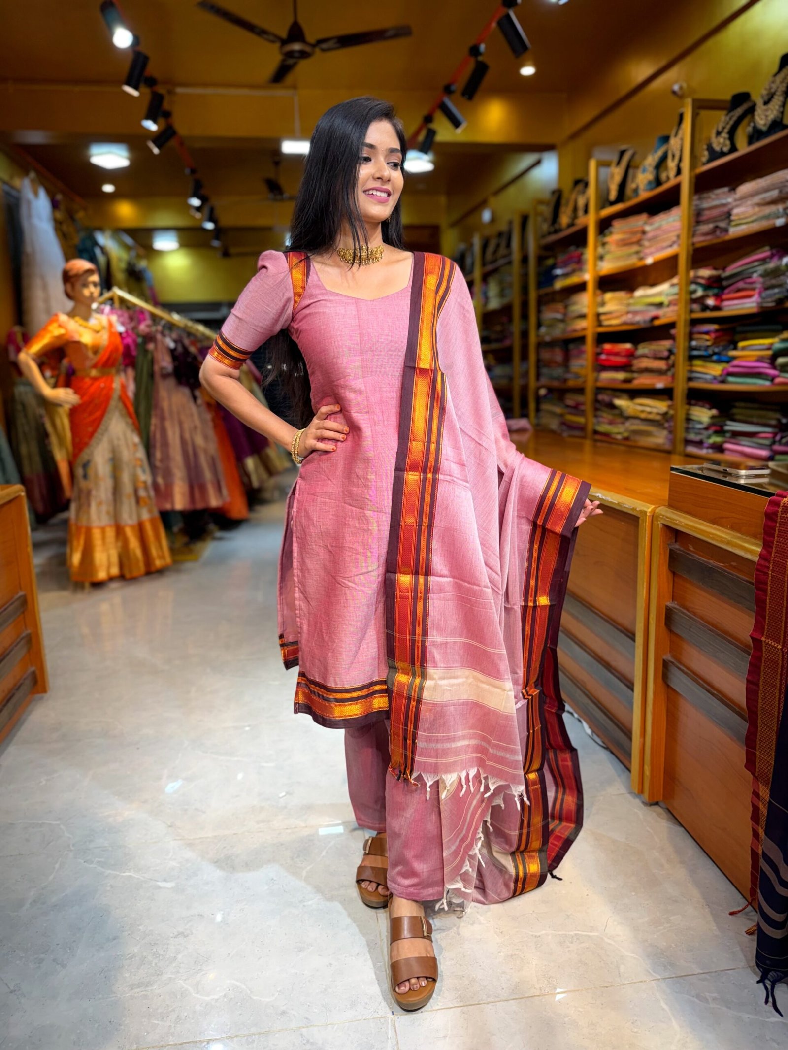 Be the first to review “Mauve Pink Zari Cotton Salwar”