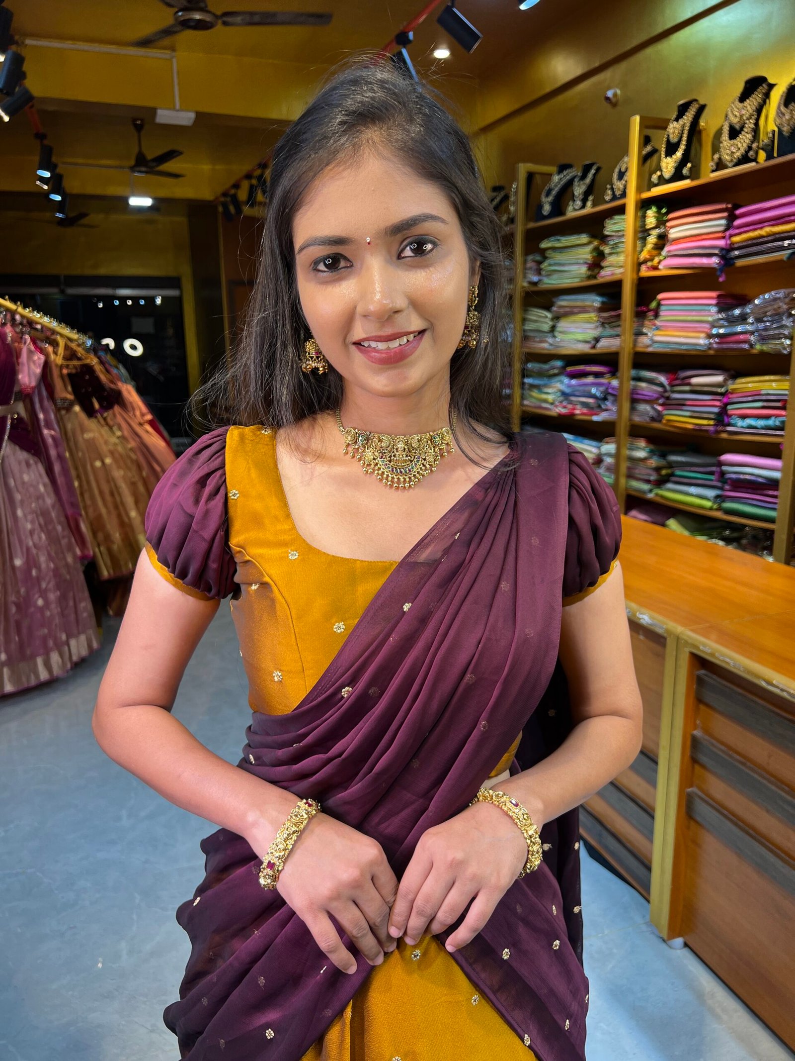 This item: Mustard Yellow with Coffee Silk Georgette half saree