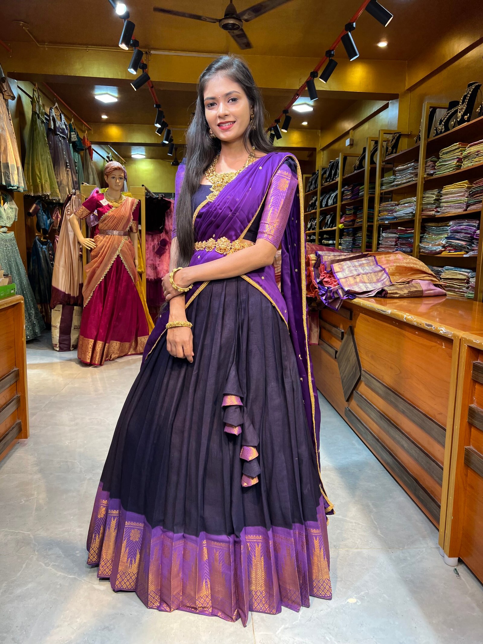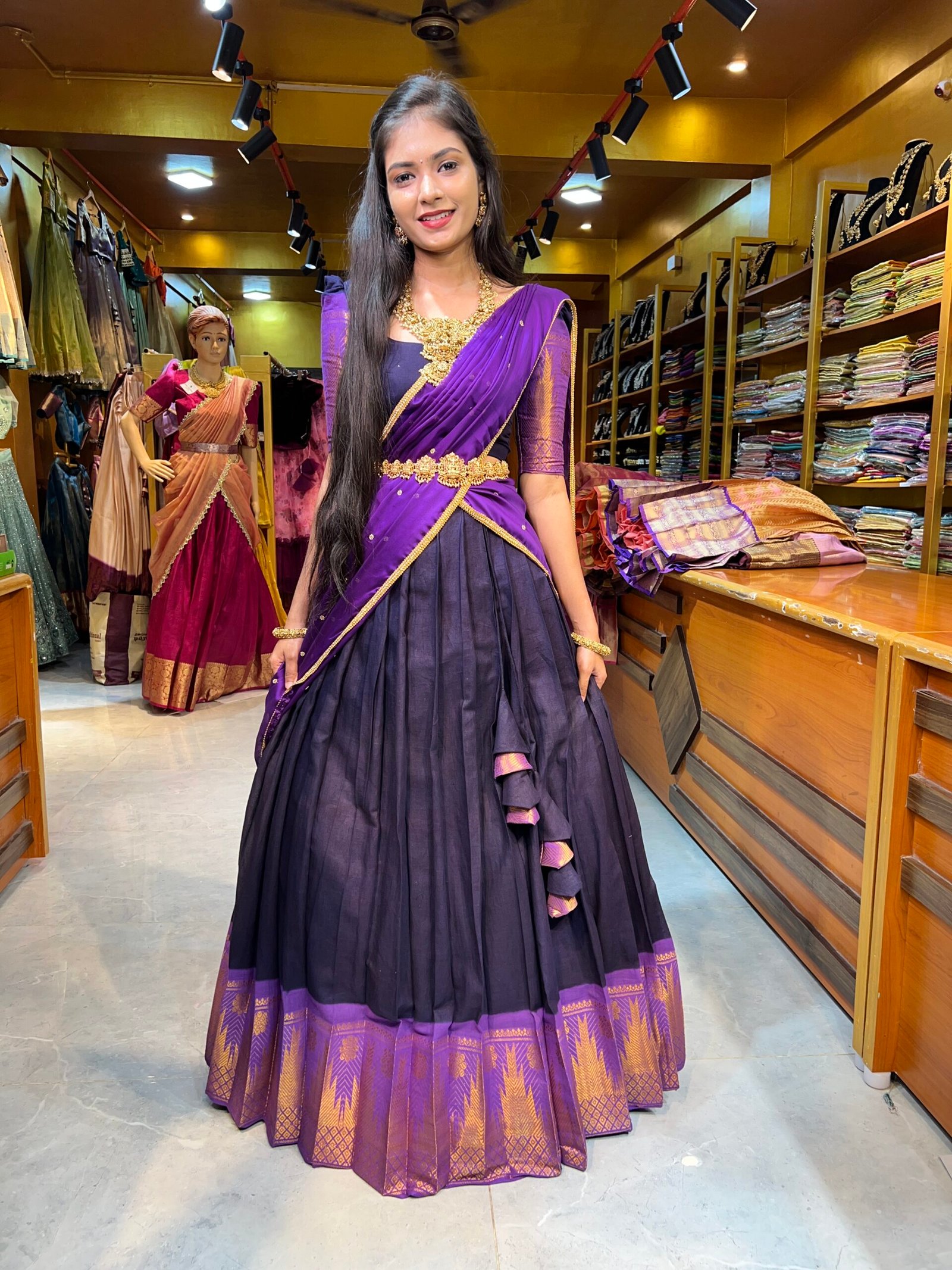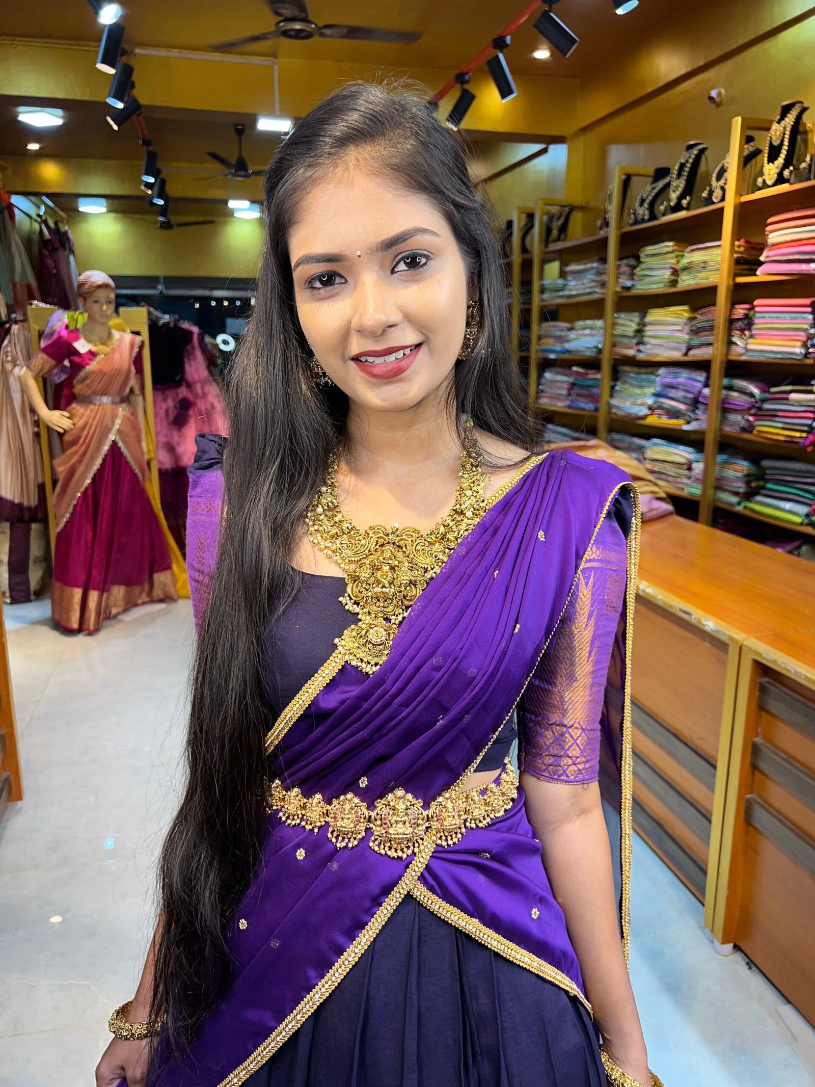 Be the first to review “Navy Blue with Purple Cotton Half Saree”