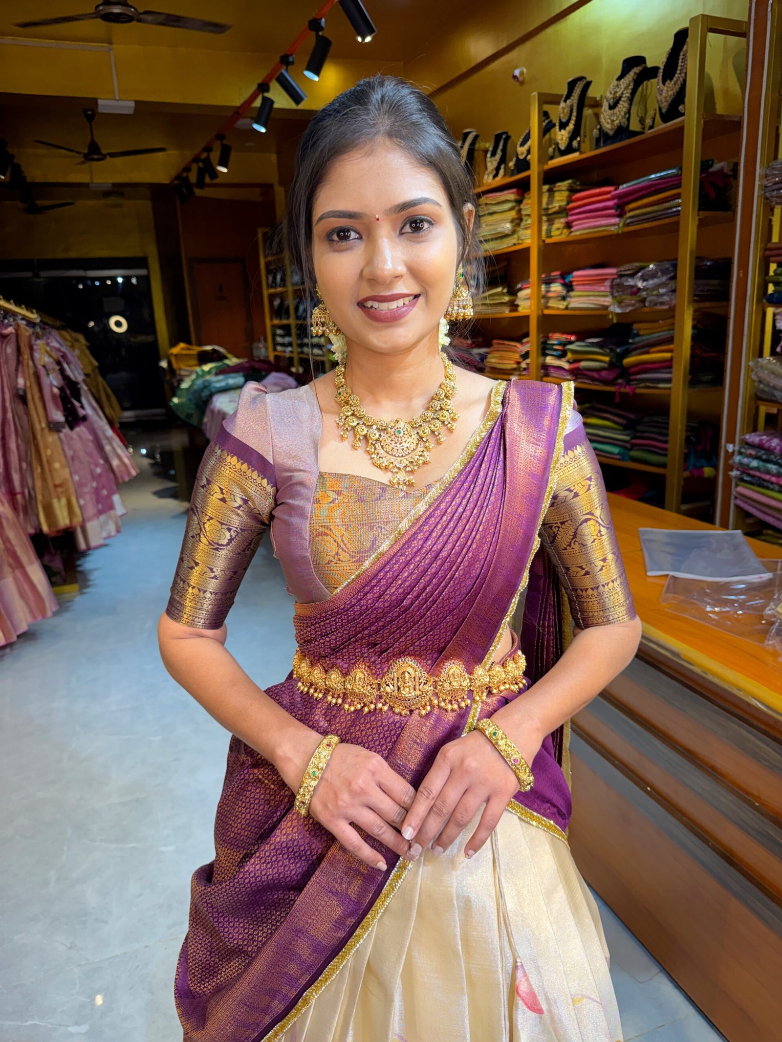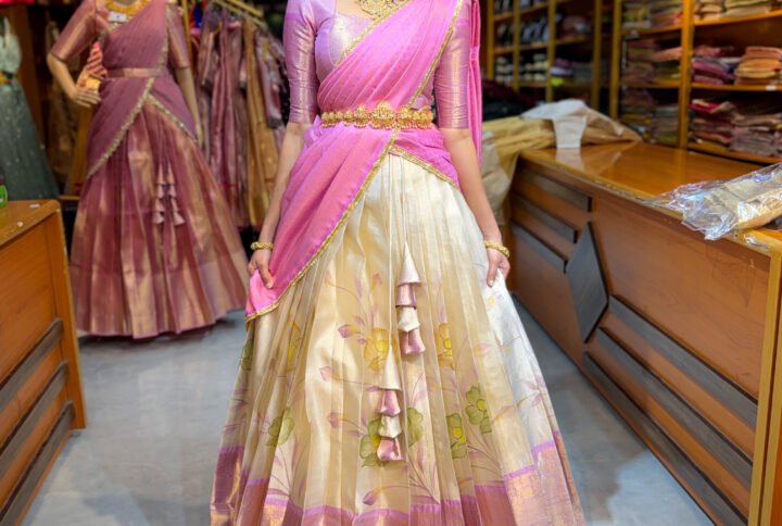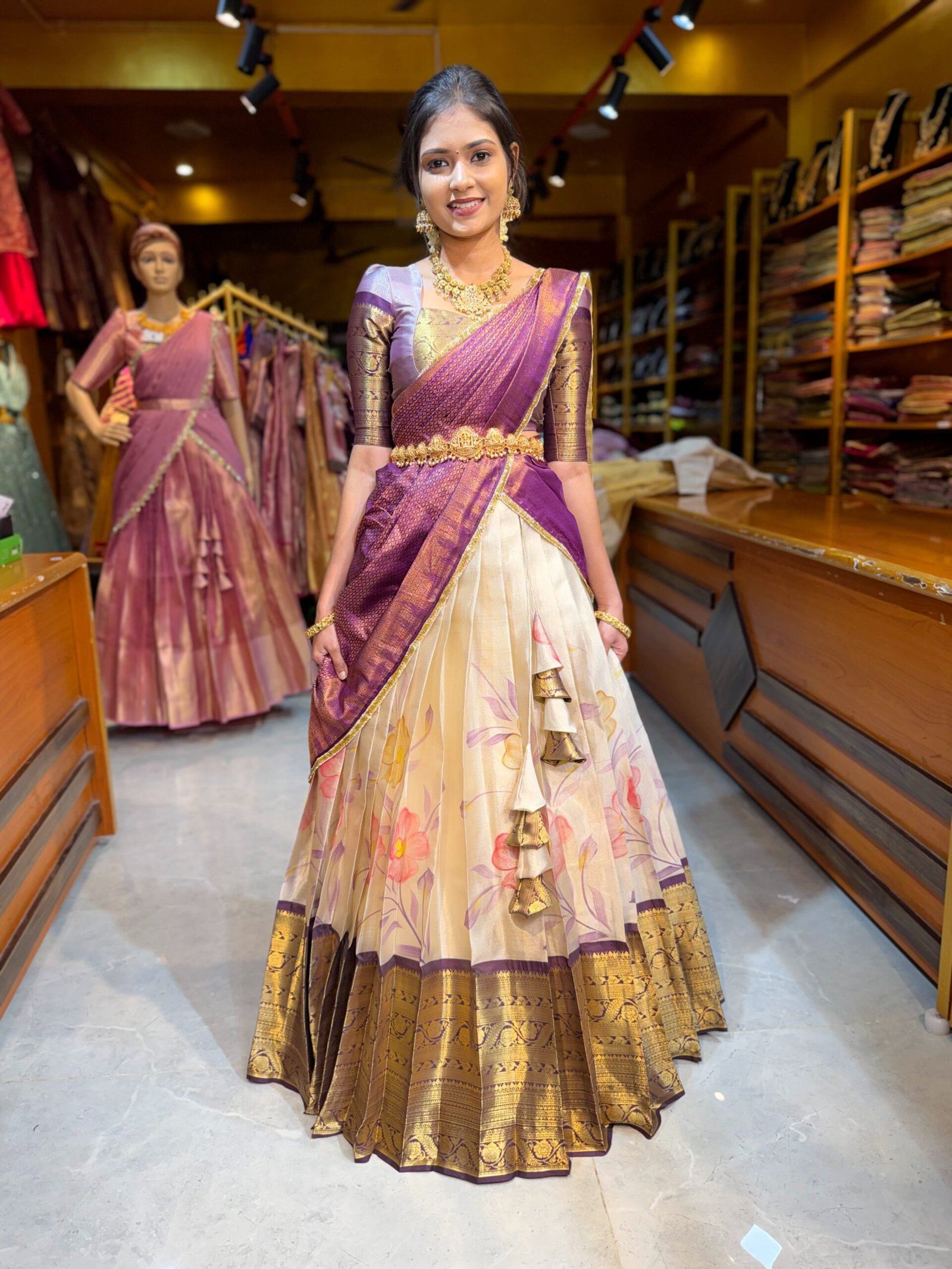 Be the first to review “Off White with Magenta Floral Tissue Half Saree”