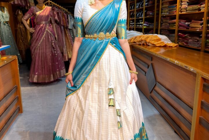 Be the first to review “Off White with Red Tissue Half saree”