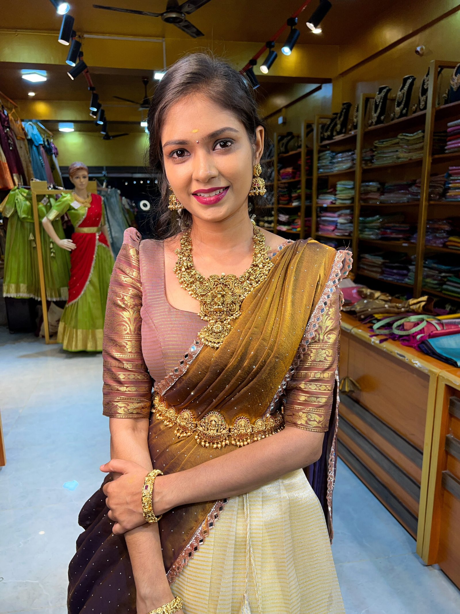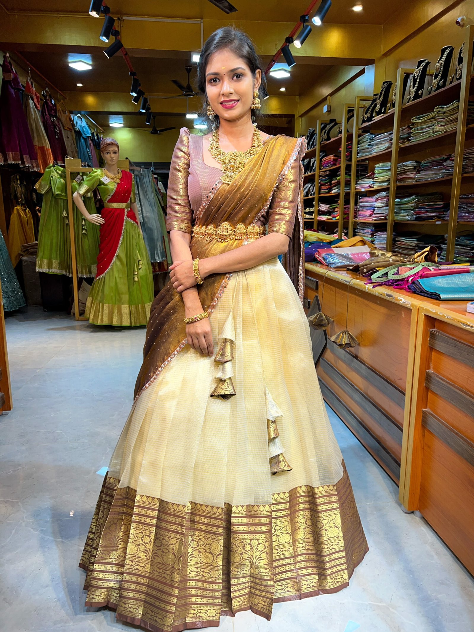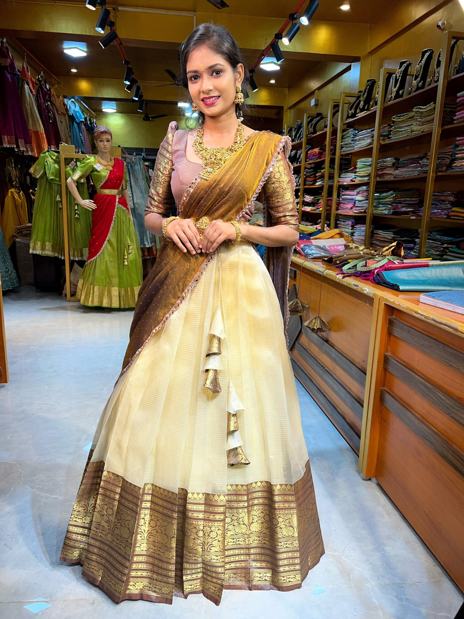 Be the first to review “Onam – Off White tissue with Brown Half saree”
