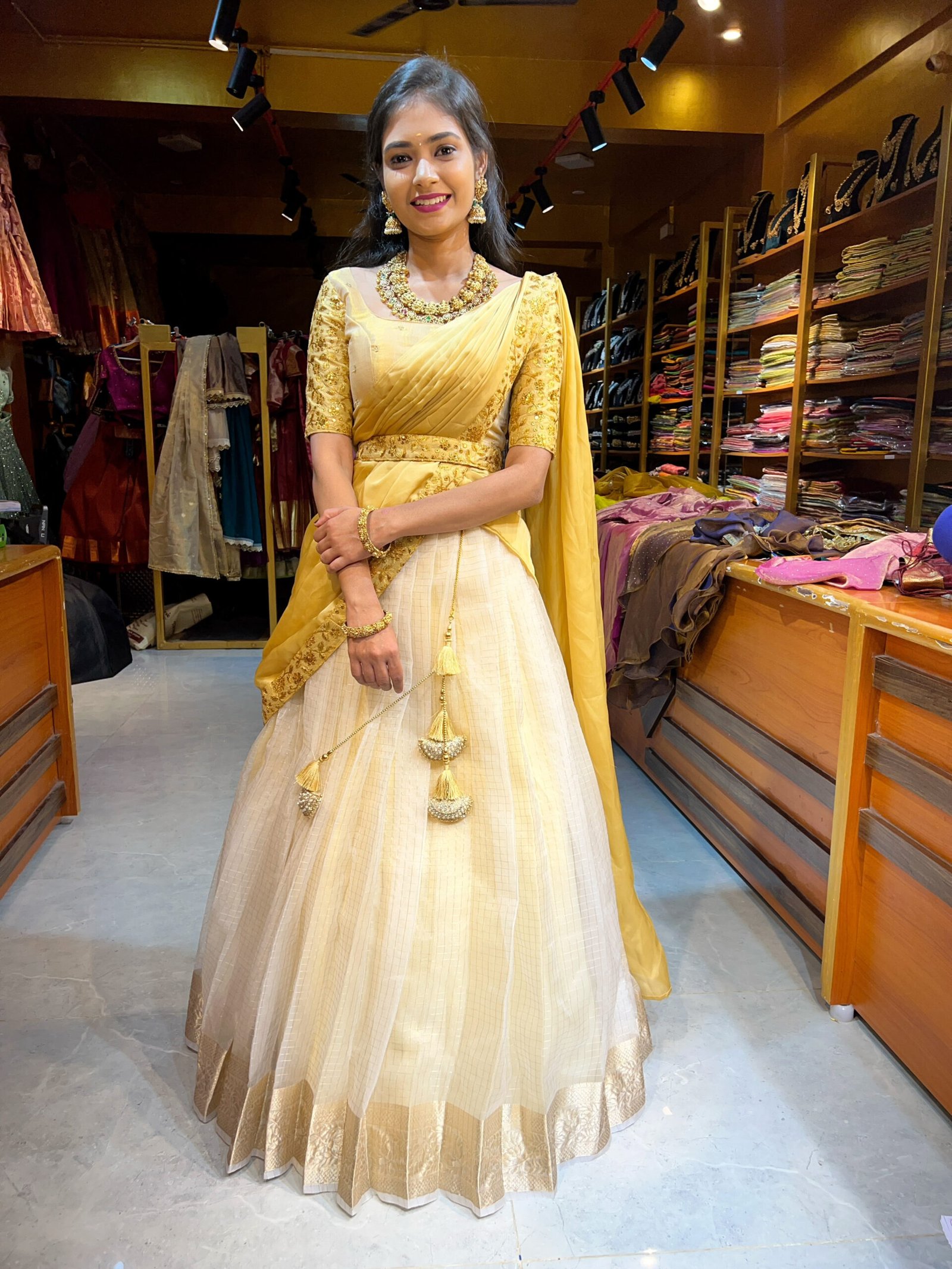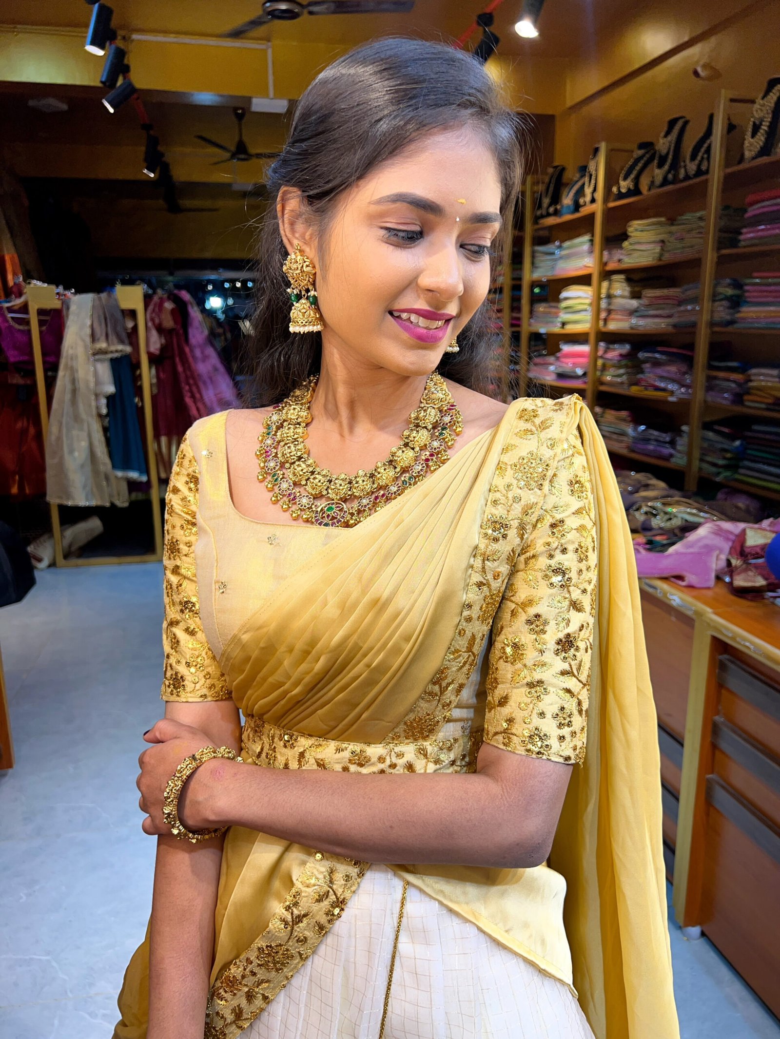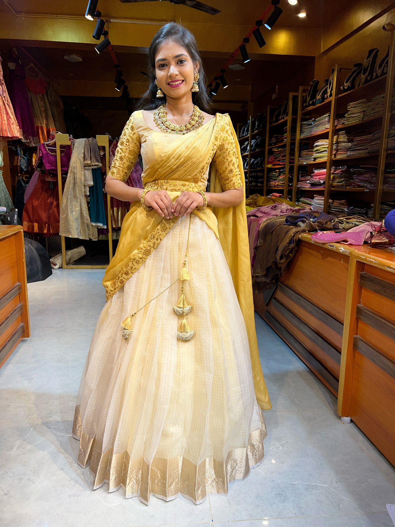 Onam – Off White tissue with Gold Half saree
