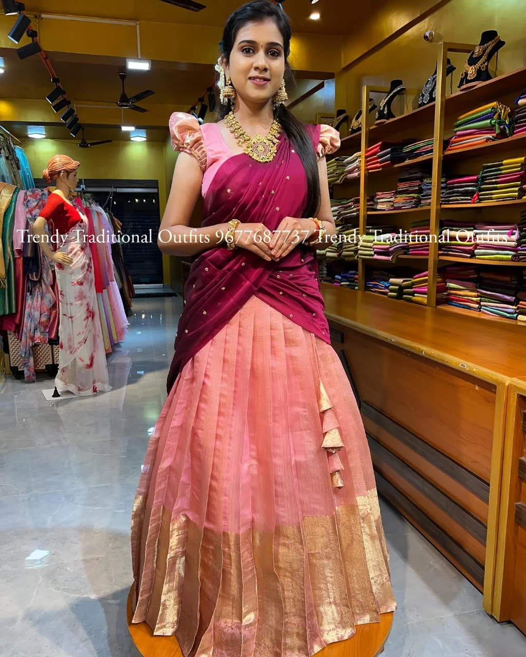 Be the first to review “Yellow with Pink Tissue Half Saree”