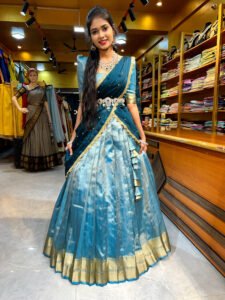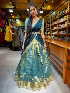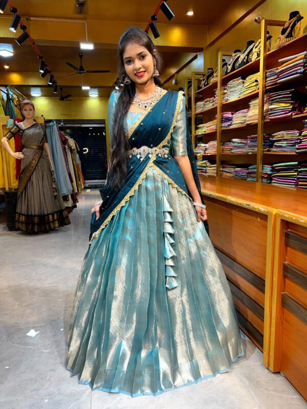 Sea Blue with Teal Blue Silk Tissue Half Saree